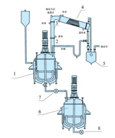 - 1、反應(yīng)鍋 2、豎式分餾 3、豎式冷 4、臥式冷 5、貯水器 6、稀釋釜 7、粗濾 8、精濾