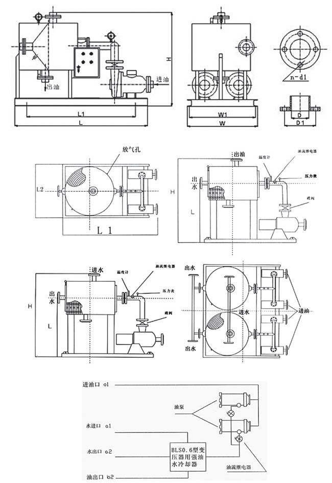 一、BLS6型變壓器用強(qiáng)油水冷卻器系列主要參數(shù)以及安裝尺寸